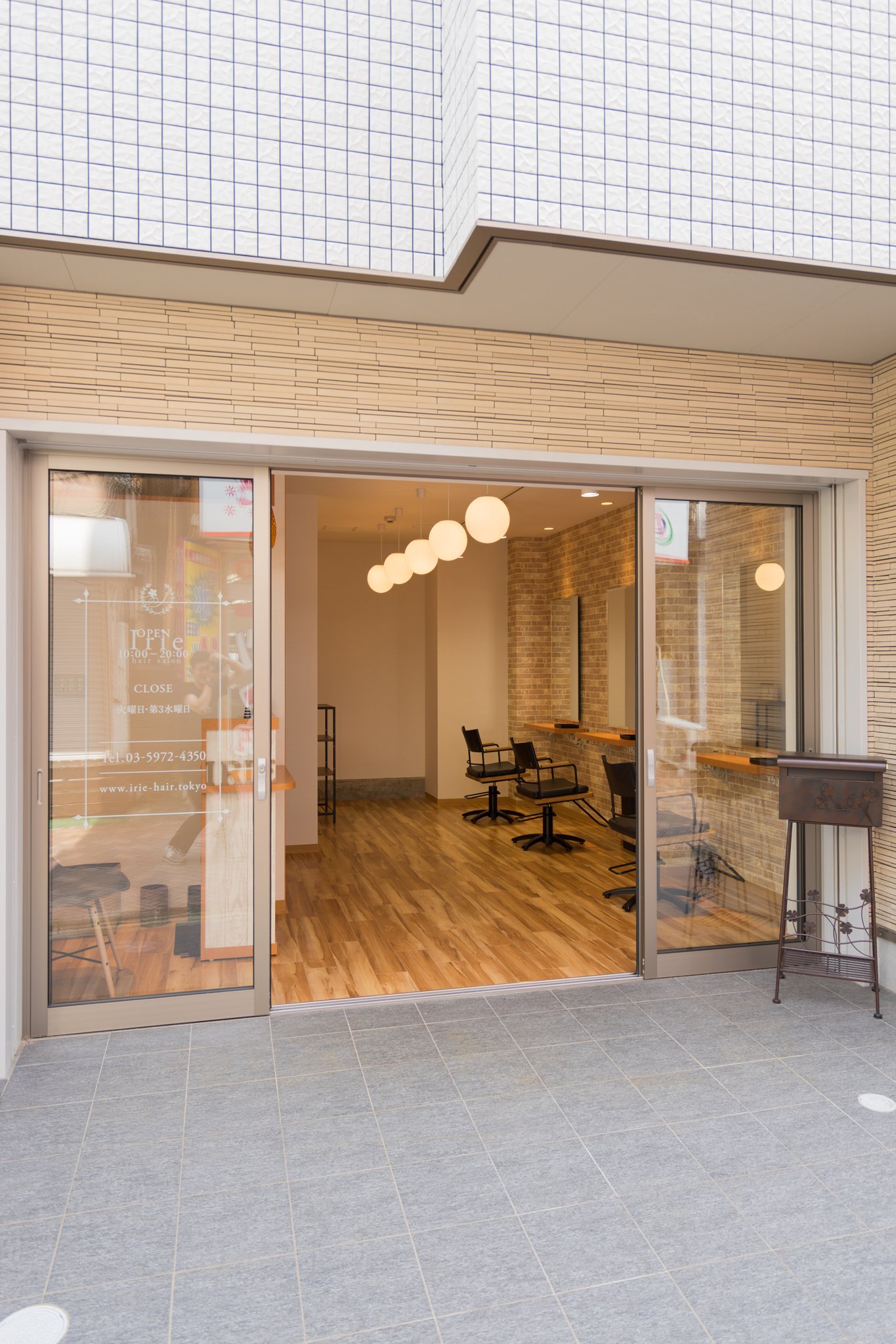 信号を渡ってしもふり銀座商店街を100mほど進んで頂くと左側に"Irie"がございます。